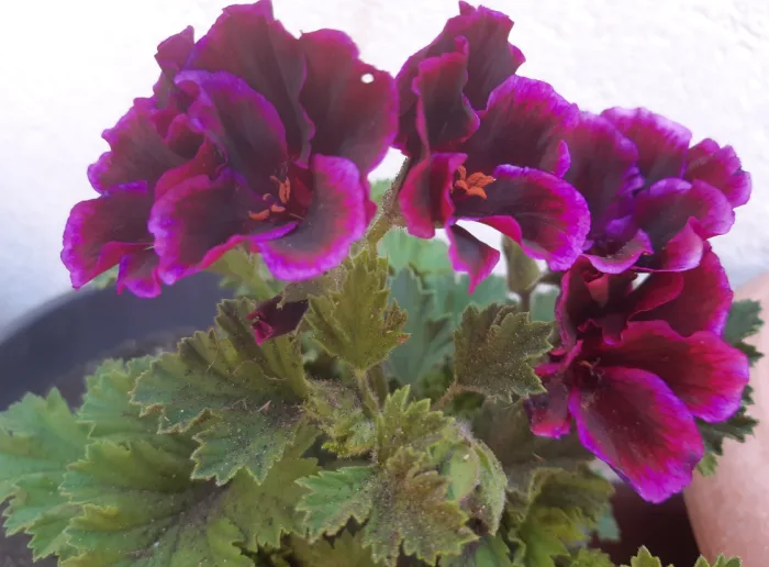 This Regal Pelargonium variety produces stunning deep-magenta flowers highlighted by a dramatic dark eye, creating a brilliant contrast that stands out in any garden. Known for its generous flowering habit, it forms a compact, upright plant with lush green foliage and a long blooming season. Ideal for adding bold, elegant colour to patios, balconies, and sunny beds.